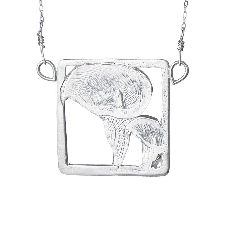 A single elegant Calla Lily flower is framed with sterling silver. Hand carved and cast with handmade hook and eye clasp on 16" chain.