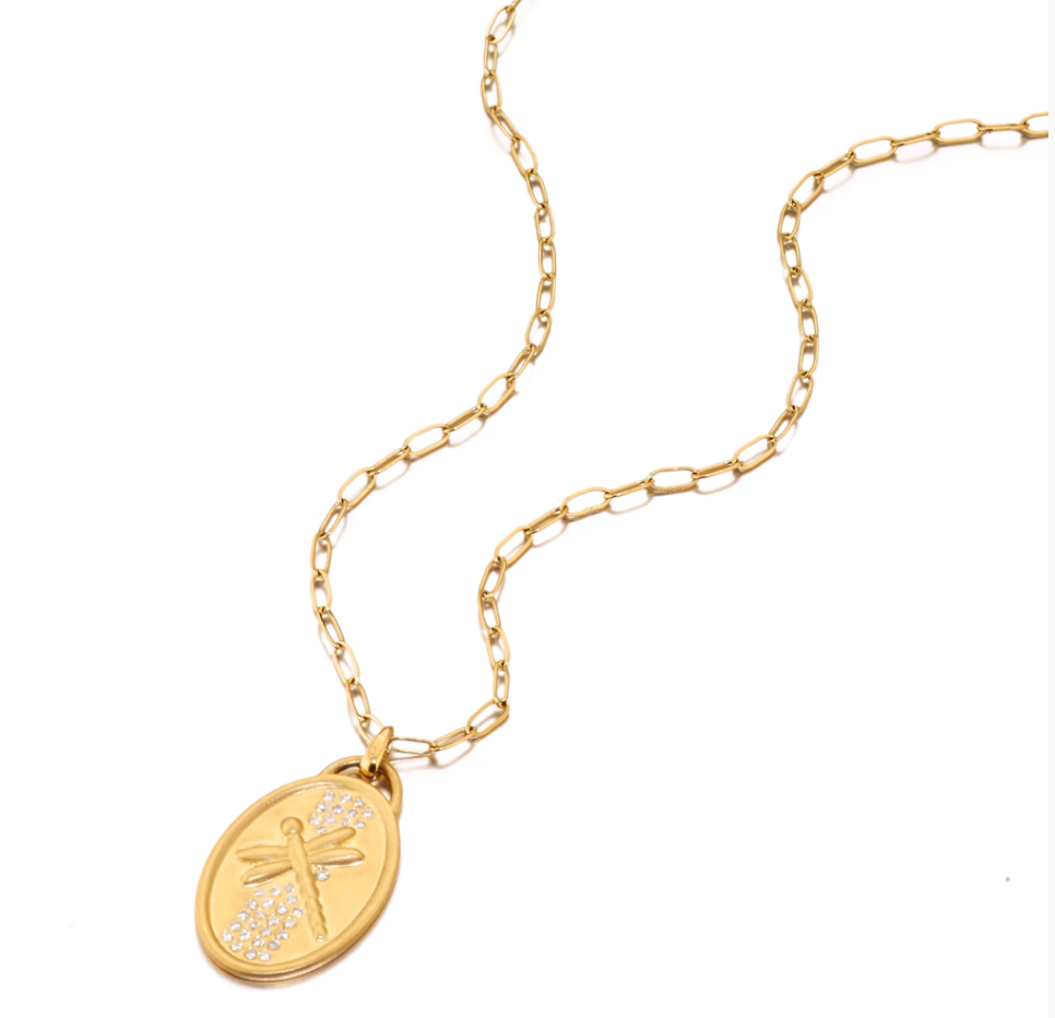 Part of Elizabeth's Fairy Dust Collection, our Dragon Fly Pendant is made of 18K recycled gold peppered with diamonds. Paperclip chain sold separately.  Embrace the ethereal allure of these treasures and let the magic of fairy dust illuminate your everyday.