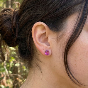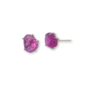 Each sapphire is highly faceted, catching the light from every angle and revealing flashes of rich pink brilliance. The organic texture of the prongs adds subtle depth and character, giving these classic studs an edge that feels both modern and timeless.
