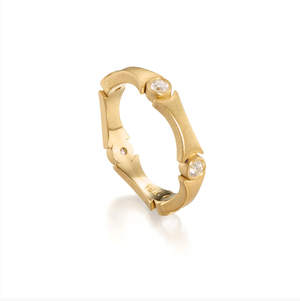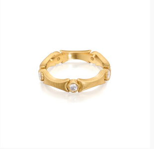 The Stability Diamond Ring embodies timeless balance and quiet power. Crafted in 18k recycled gold, its sculptural form is accented with diamonds that radiate strength and enduring beauty. Perfect for stacking or worn solo as a refined statement, this ring is part of the Aegis Collection, inspired by empowerment and resilience.