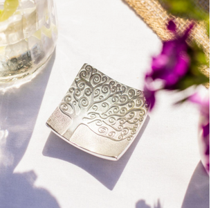 The intricate, swirling branches of the Tree of Life adorn this pewter treasure tray, making a lovely reminder of the astonishing beauty of nature and the interconnectedness of all things. This little home decor accent makes a great stocking stuffer, White Elephant gift, gift for a friend, or any other occasion.